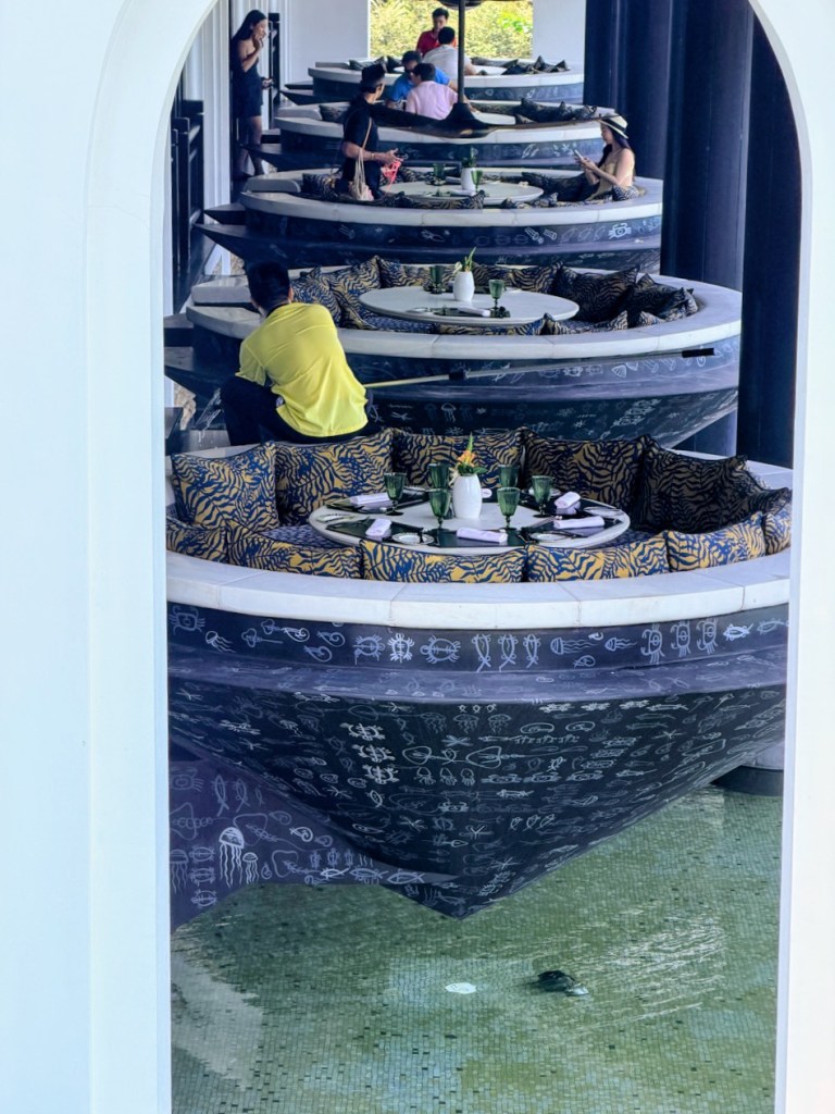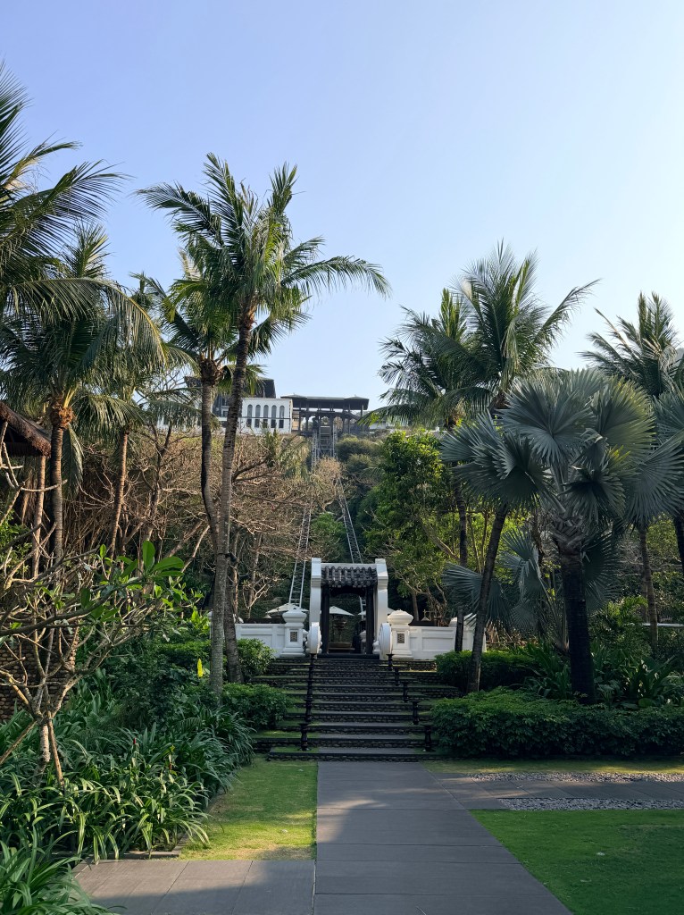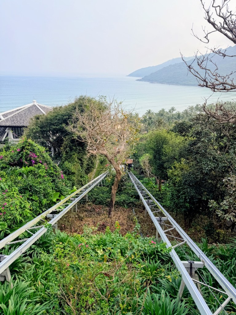 Perched dramatically on the Son Tra Peninsula, the resort cascades down the mountainside toward the sea. It’s divided into four levels—Heaven, Sky, Earth, and Sea—connected by a charming tram system that becomes part of the experience itself.