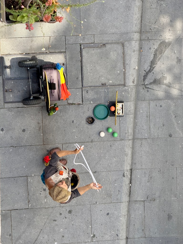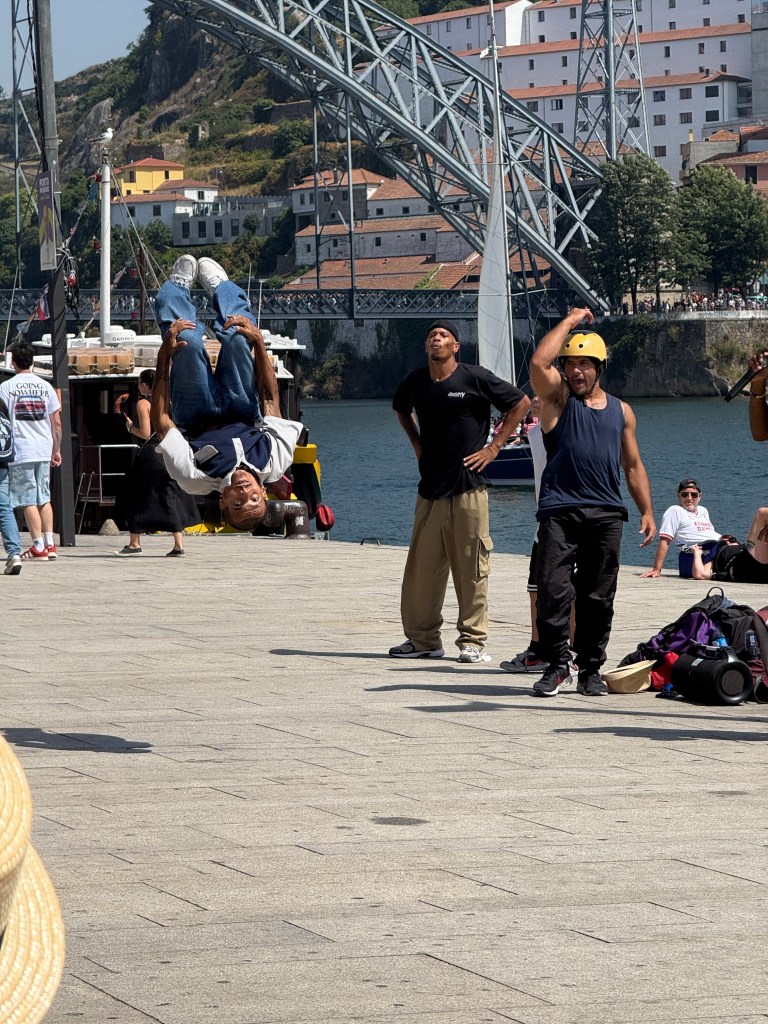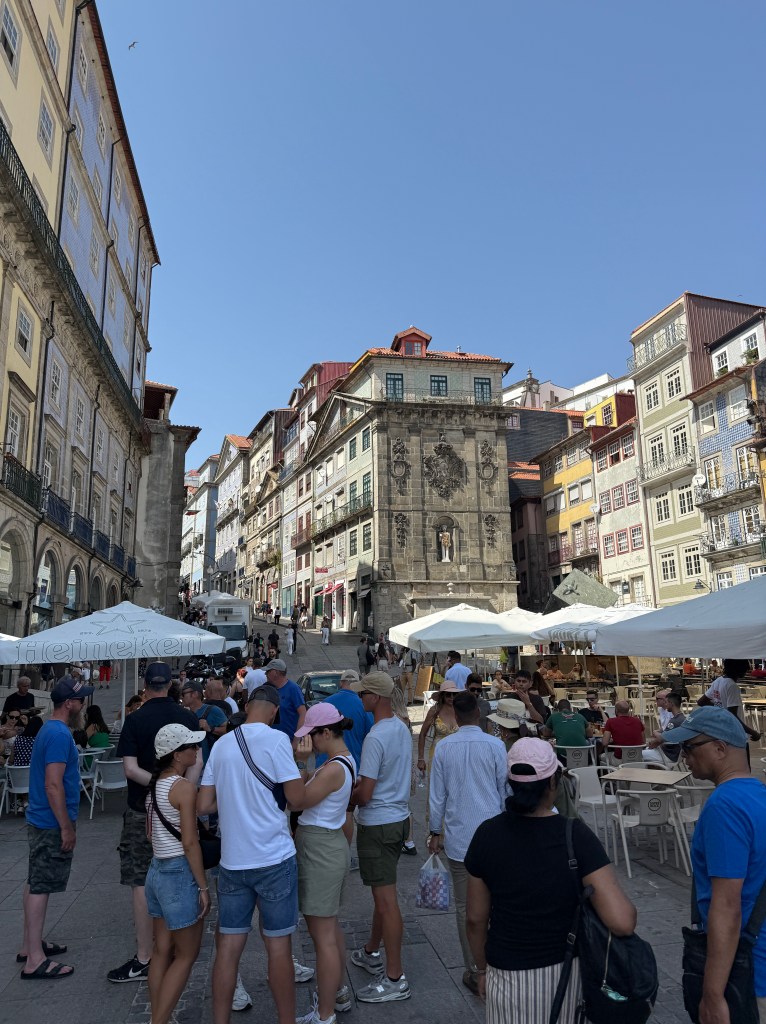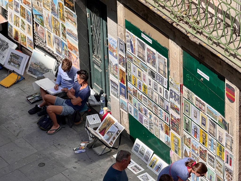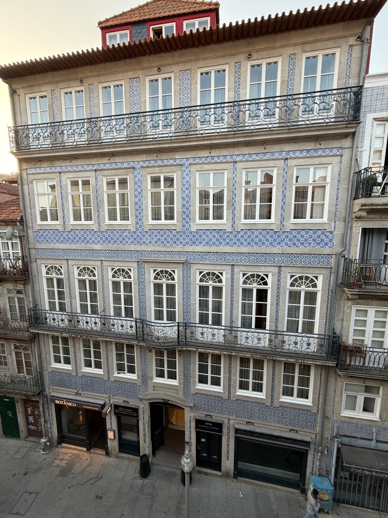 Our condo is right on Rua das Flores, one of Porto’s most charming pedestrian streets. From our balcony, we have front-row seats to endless people-watching. The street is lined with restaurants, boutiques, and hotels, and it’s always buzzing with life. Street performers set the soundtrack—musicians strumming guitars, singers belting ballads, artists painting on the spot, and even magicians drawing curious crowds. It’s the kind of energy that makes you want to linger outside long after your meal is finished.