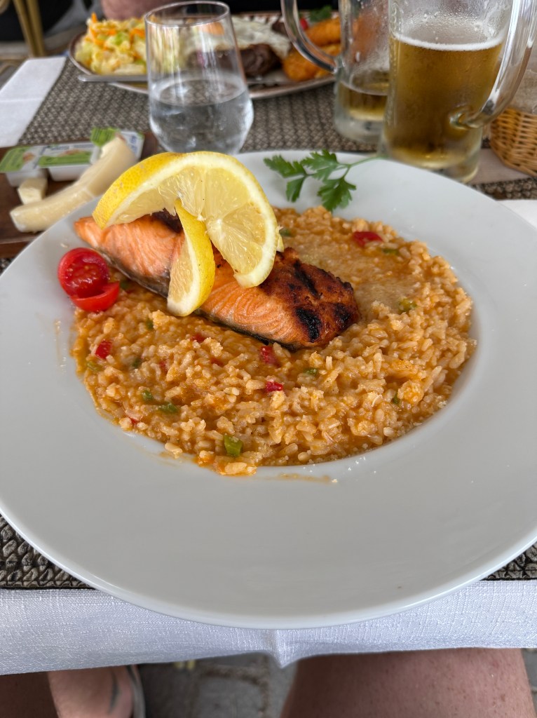 The food here has been nothing short of amazing—fresh hummus, cod prepared every way imaginable, salmon, steaks, and crisp vegetables. I also discovered my new favorite drink: the Port Tonic. Similar to a gin and tonic but lighter and more refreshing, it’s the perfect sunny-day sipper.