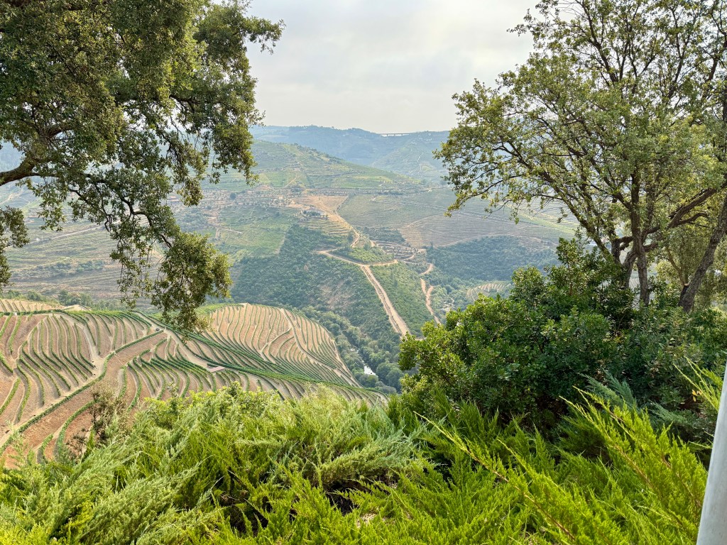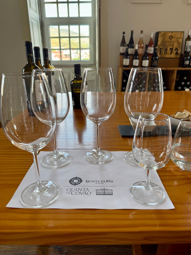 From there, we visited two wineries: H.O. Winery and Quinta do Covão. Both offered fascinating insights into wine production, from the valley’s uniquely terraced vineyards to the traditional methods still used for making Port. The Douro Valley’s climate is notably warmer—about 15°F hotter than Porto—thanks to the surrounding mountains, which shield it from Atlantic breezes and create a Mediterranean-like microclimate ideal for grape growing.