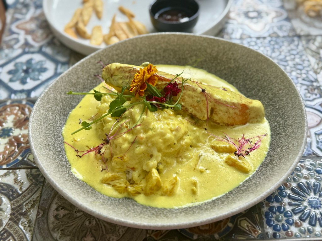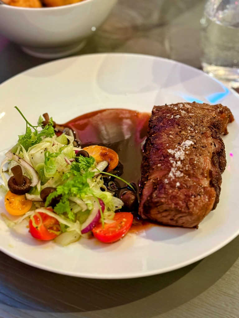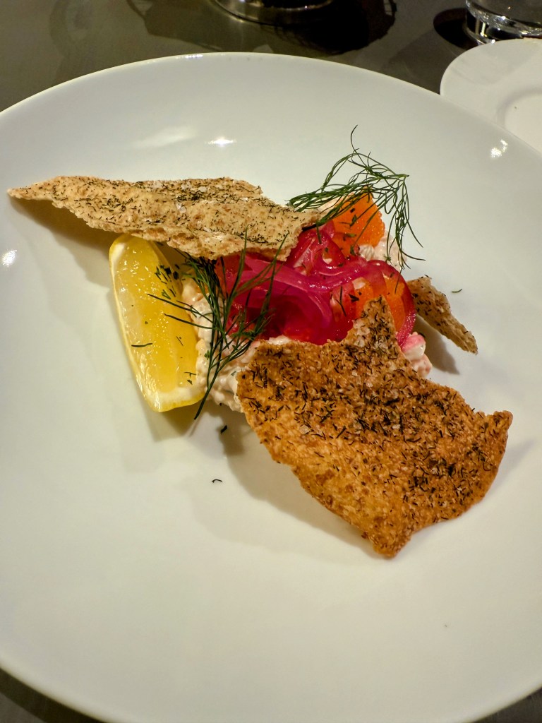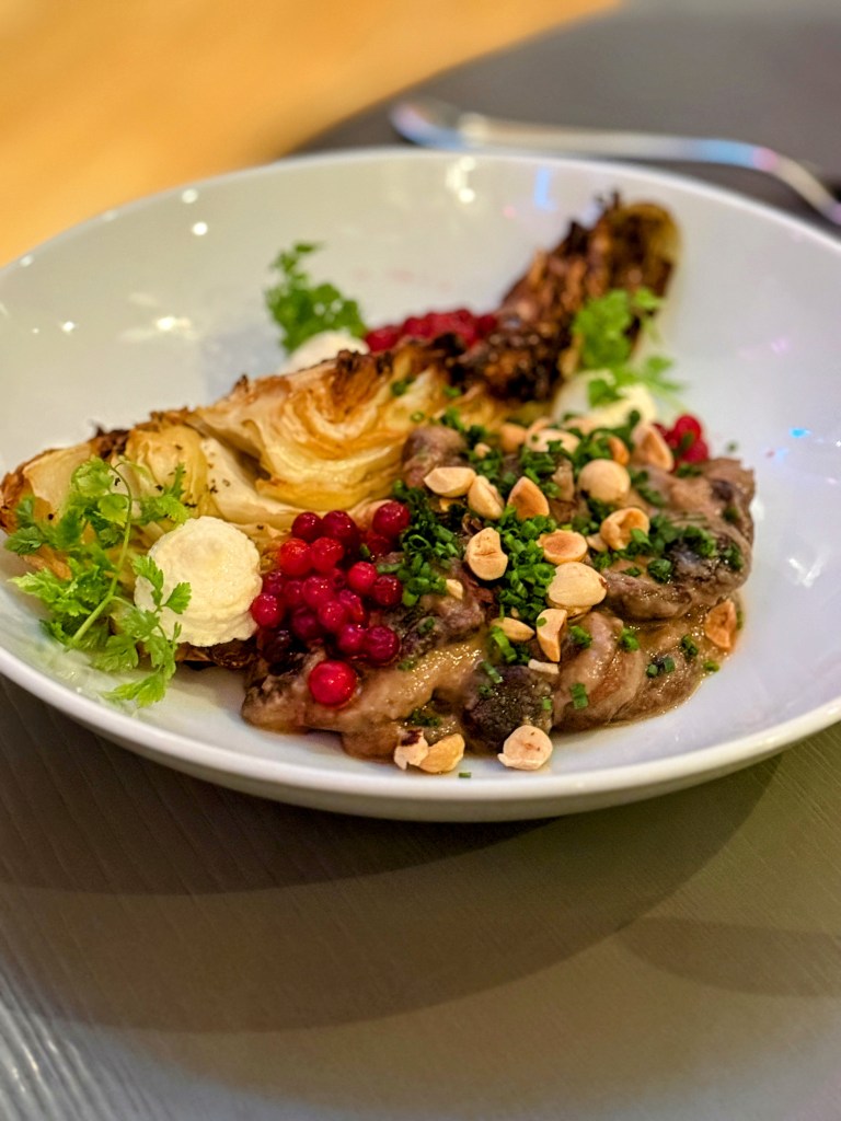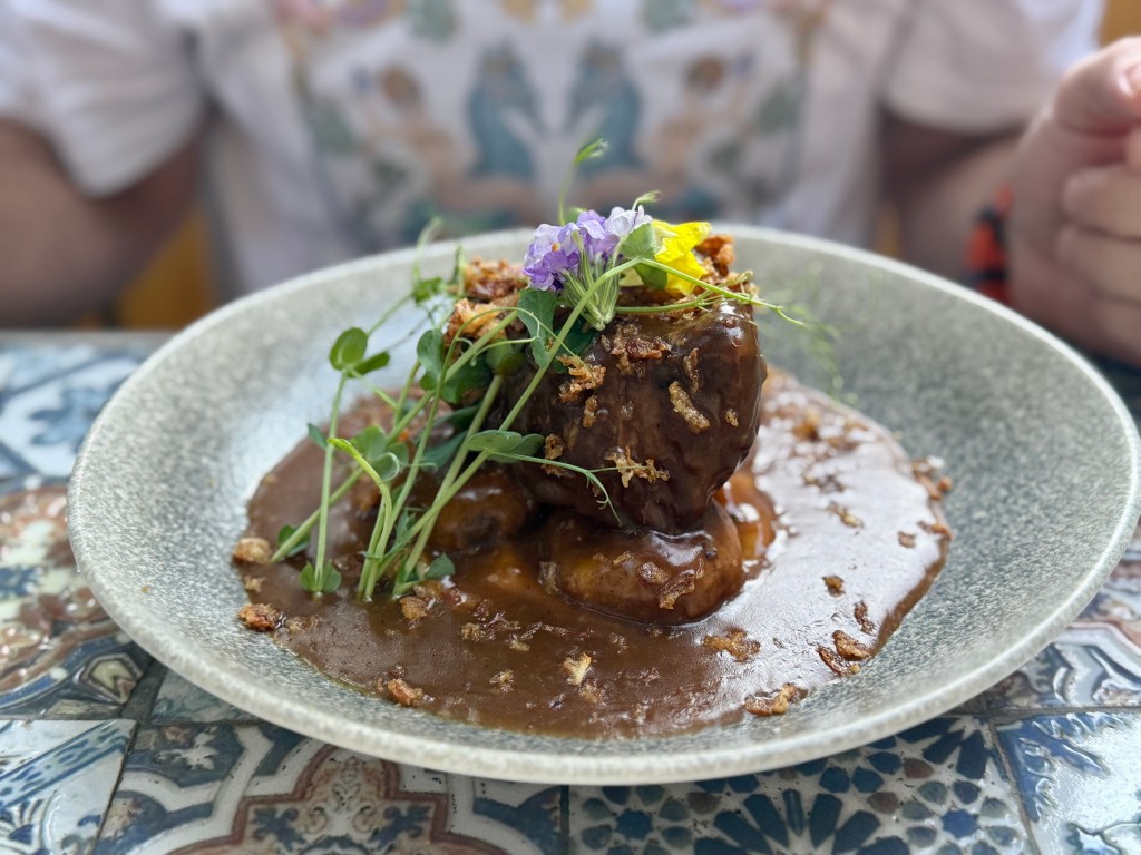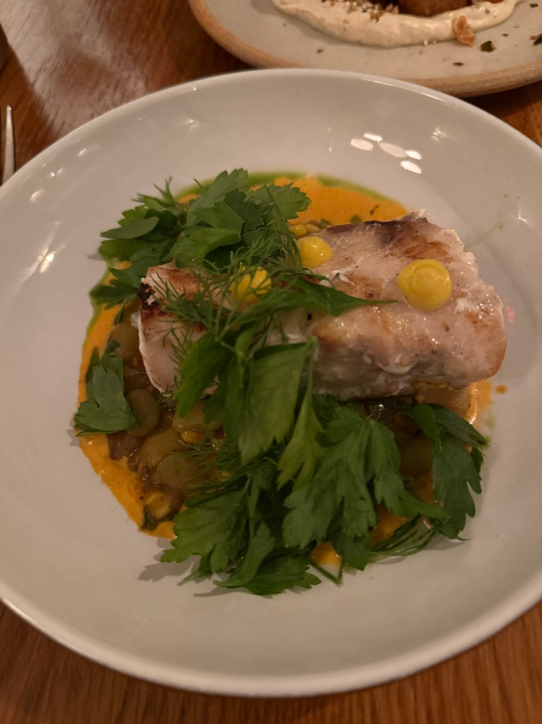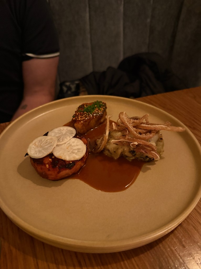 Casey started with oysters he insists were the best he’s ever had, while I went with a bright, perfectly balanced ceviche. The surprise standout? A butternut squash second course recommended by our server — unbelievably scrumptious and the perfect hint of fall. Our mains (pork for Casey and fish for me) were excellent, but dessert stole the show: a deconstructed s’mores masterpiece. Drinks? Also perfection.