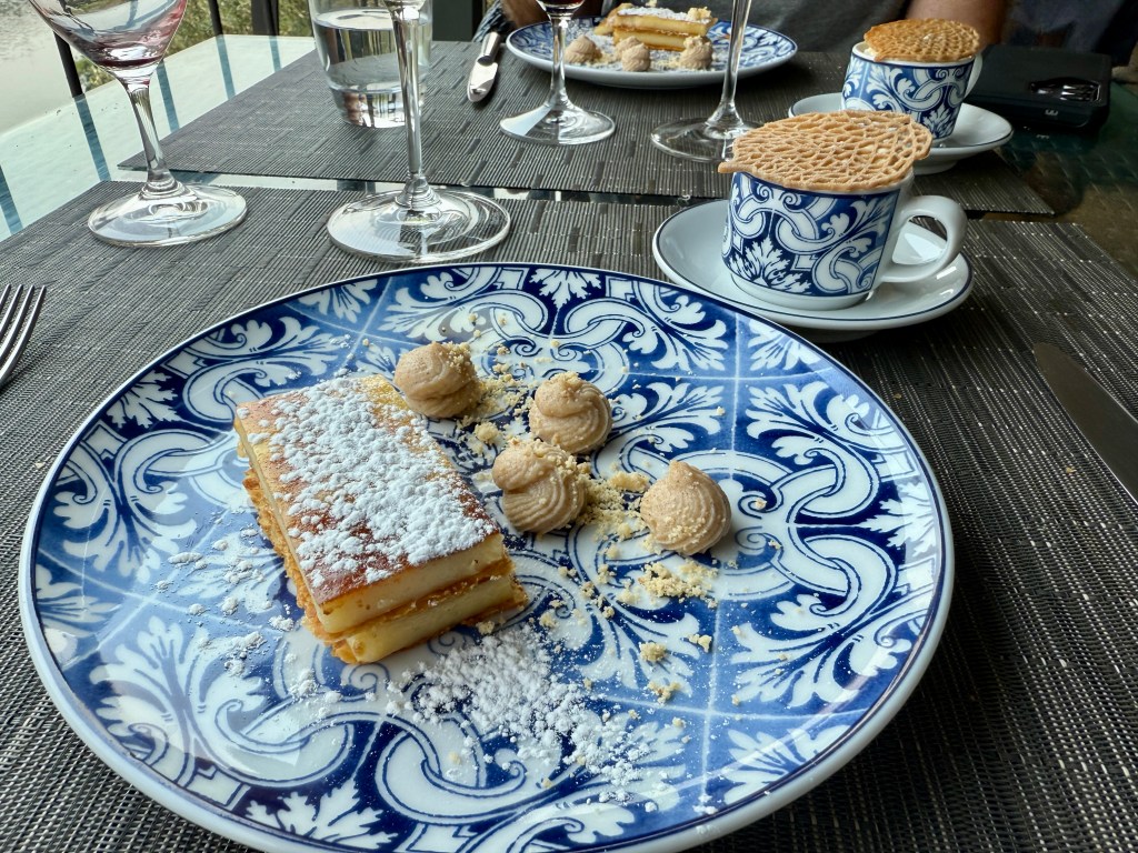 On our last evening in Porto, we treated ourselves to a memorable dinner at Sala de Provas, a wine bar perched high above the city. The views were phenomenal, the wine tastings perfectly curated, and the food sublime. I had an incredible cod dish paired with homemade chips, while Casey enjoyed a perfectly cooked steak. It was the ideal way to toast to our time in Porto before moving on.