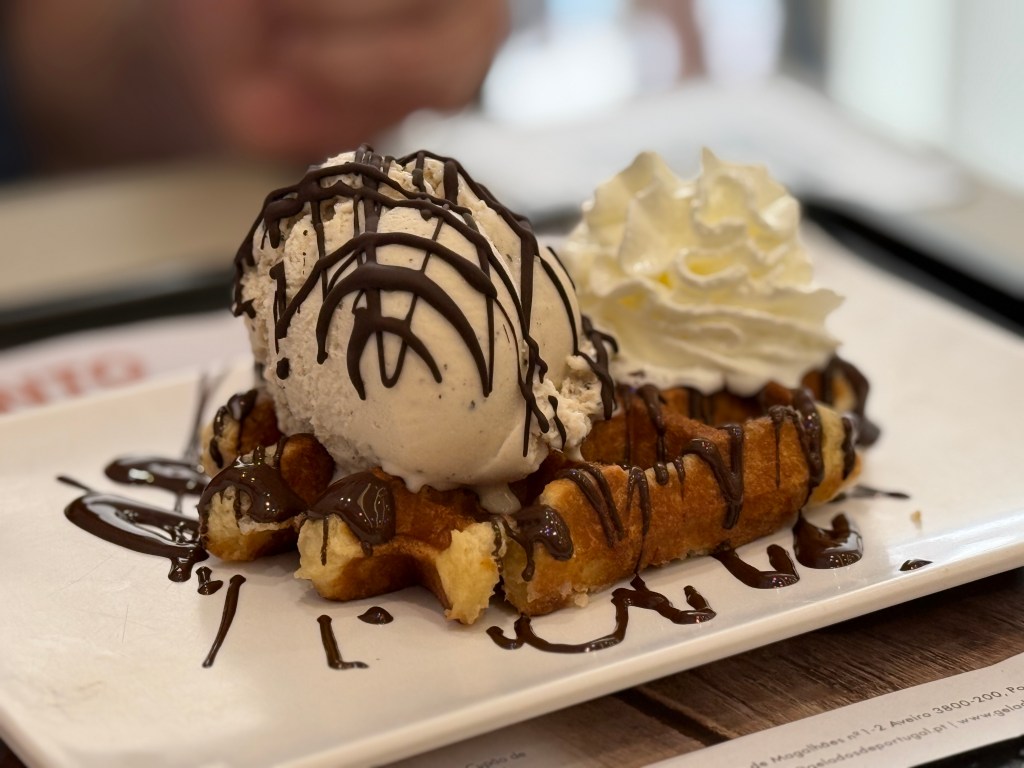 We had lunch at Yeah! Restaurant, a trendy spot that puts a modern twist on traditional Portuguese flavors. Dessert was the highlight: Ice Cream Portugal. I kept it classic with two scoops, while Casey went all in with a waffle topped with banana ice cream, chocolate sauce, and whipped cream. Delicious doesn’t even cover it.