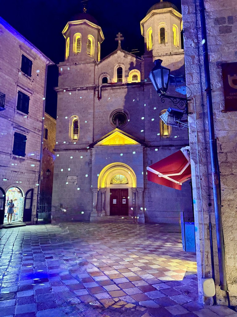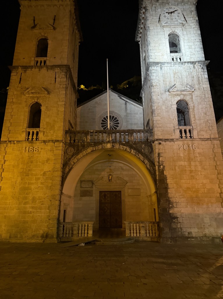 Walking through Kotor’s Old Town is like walking through a storybook. The city was first fortified during the Byzantine Empire, expanded under Venetian rule, and has survived earthquakes, invasions, and centuries of change. Today, its UNESCO World Heritage status ensures that its stone gates, fortifications, and piazzas remain beautifully preserved. You can almost feel the centuries of history whispering through the alleyways. One of the crown jewels of the Old Town is St. Tryphon’s Cathedral, built in 1166. Dedicated to the patron saint of Kotor, this Romanesque masterpiece has survived multiple earthquakes, including a devastating one in 1667, which led to major reconstruction. The twin bell towers stand proudly above the town, and inside, the cathedral houses priceless relics and stunning frescoes. It’s a remarkable reminder of Kotor’s deep spiritual and cultural heritage. As an added bonus, it also reminds you of the hour with its ringing bells – starting at 6a.m.! It’s convenient for when you want to know what time it is while lying in bed, not ready to get up to check your phone!