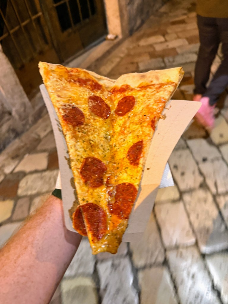 Kotor has grown livelier over the past decade thanks to its popularity as a cruise ship destination. Every day, new visitors pour into the squares, cafés, and restaurants, adding to the energy. It’s a vibrant mix of locals and travelers, with music in the air, shop doors open wide, and the smell of wood-fired pizza drifting through the streets. Speaking of pizza, I had one of the largest—and tastiest—slices of pizza of my life here. A pepperoni slice roughly the size of my forearm, and honestly, one of the top ten slices I’ve ever had. Sometimes the simplest meals surprise you the most.