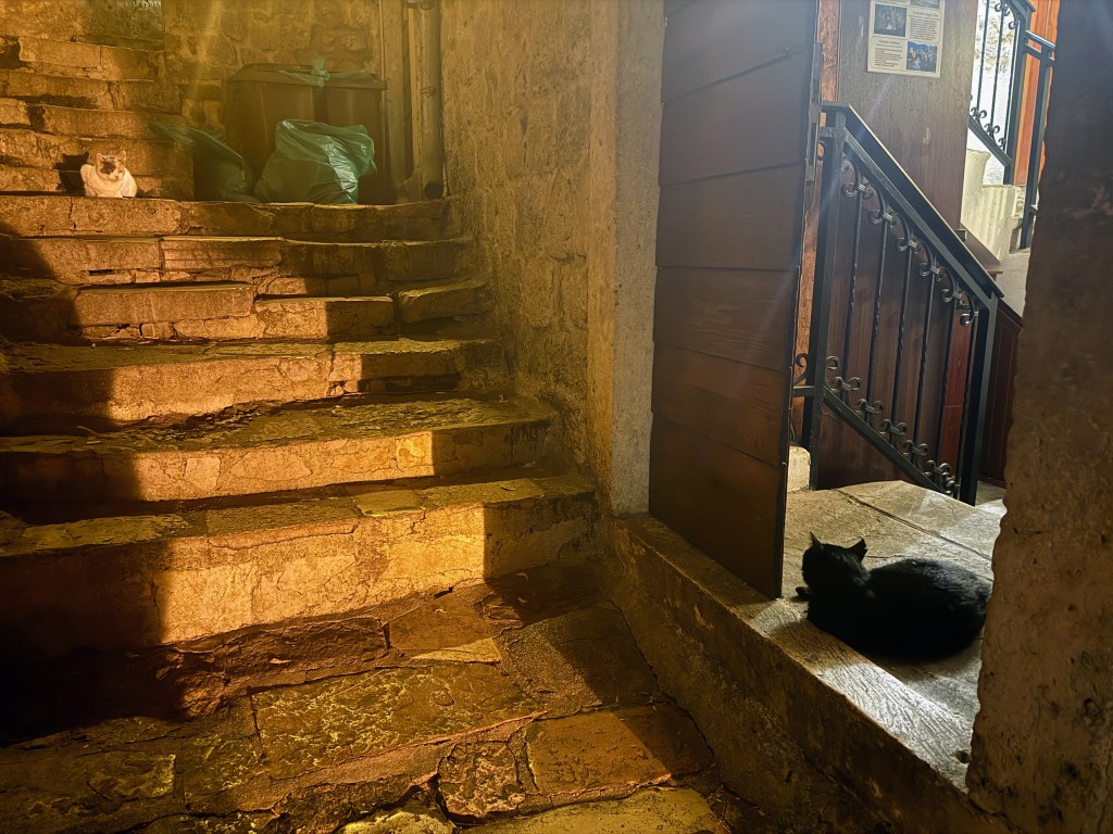 Oh, and the cats. Kotor is famously full of them. They lounge on steps, wander cobblestones, and seem to be unofficial mascots of the city. I want to pet them all.