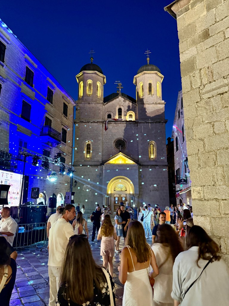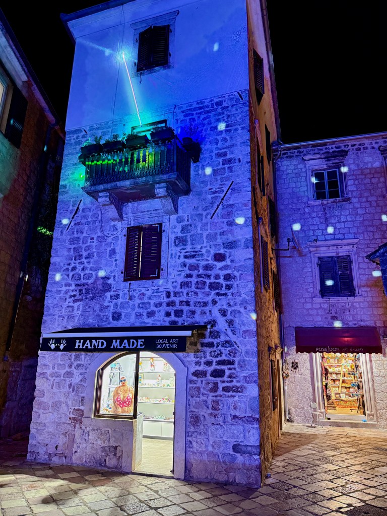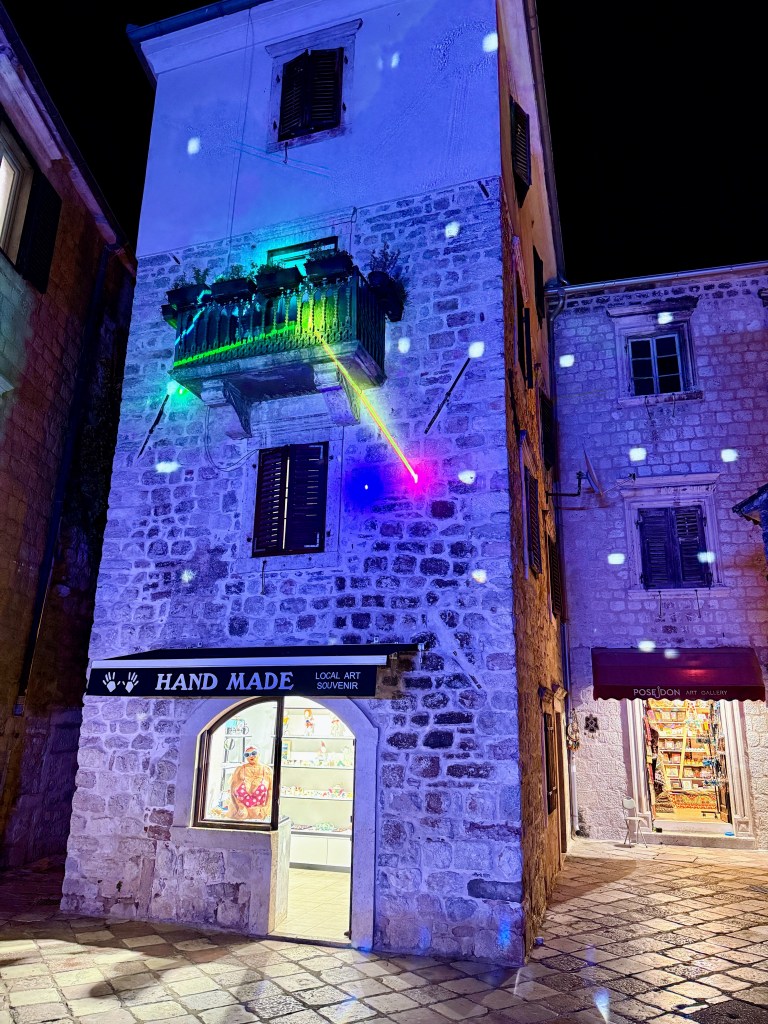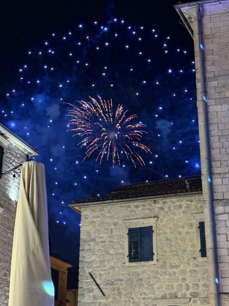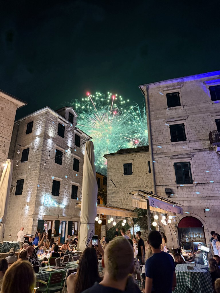 On the 25th, we were lucky enough to experience Boka Night, one of Kotor’s most beloved festivals. Originally a traditional celebration where decorated boats paraded through the bay, it’s grown into a modern spectacle of music, fireworks, and lights. We found ourselves dancing alongside fellow travelers as an EDM DJ turned the square into an open-air club. Fireworks burst above the fortress walls, and colorful lights illuminated the centuries-old buildings. It was unforgettable.