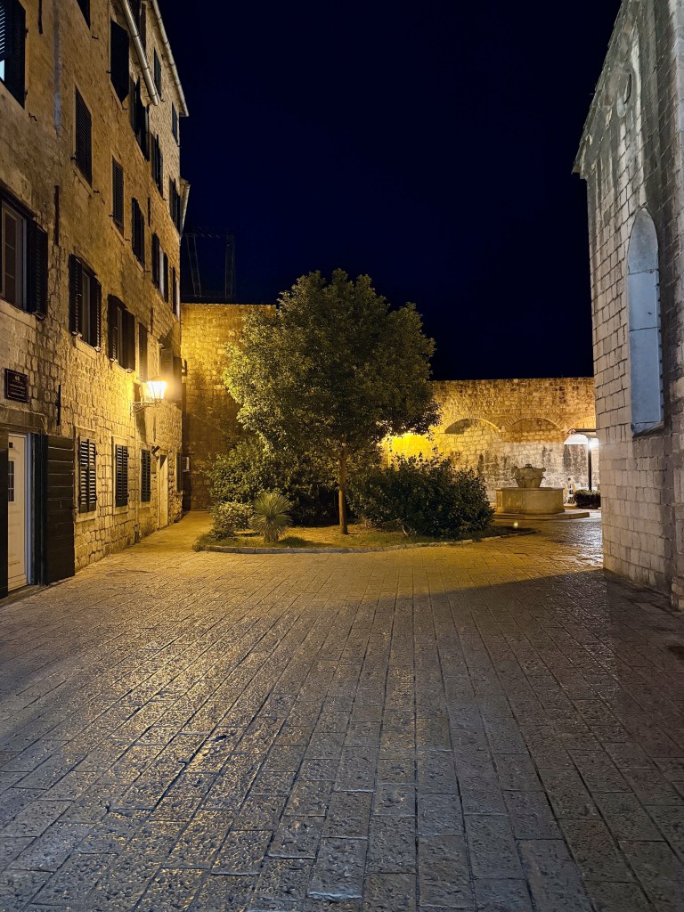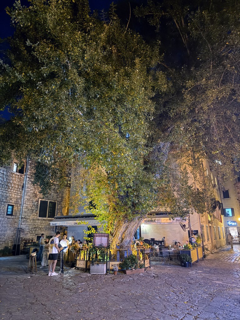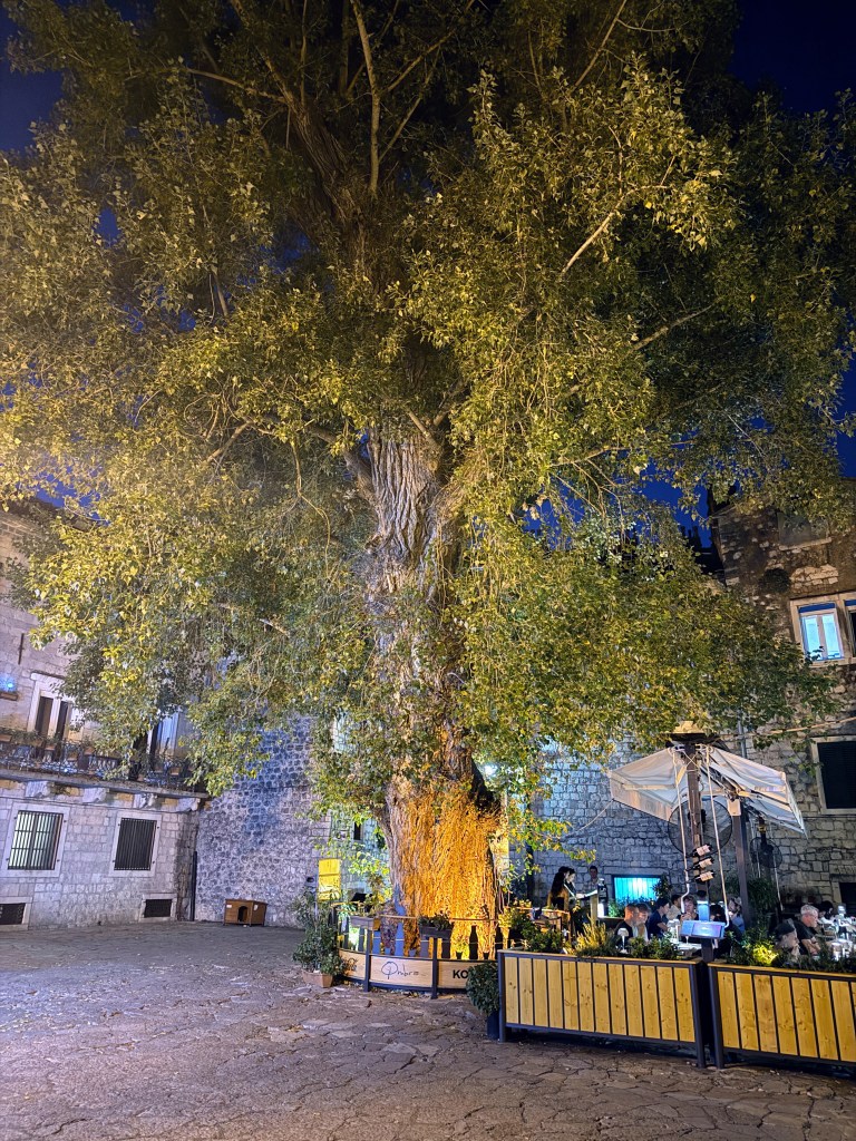 One evening, we dined at a café next to the Old Town’s legendary Black Poplar Tree, located in the Piazza of the Cinema. Planted after the devastating earthquake of 1667, the tree has stood as a symbol of resilience for centuries. Sitting beneath its branches, eating and drinking where countless generations have before us, was a uniquely grounding experience.