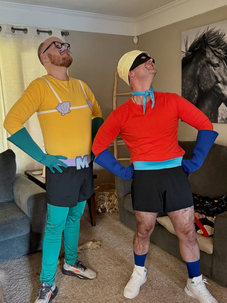 After returning from Europe, our first stop was North Carolina, where we celebrated Halloween with the family. Casey and I channeled our inner childhood heroes and dressed as Mermaidman and Barnacle Boy — and honestly, we nailed it.