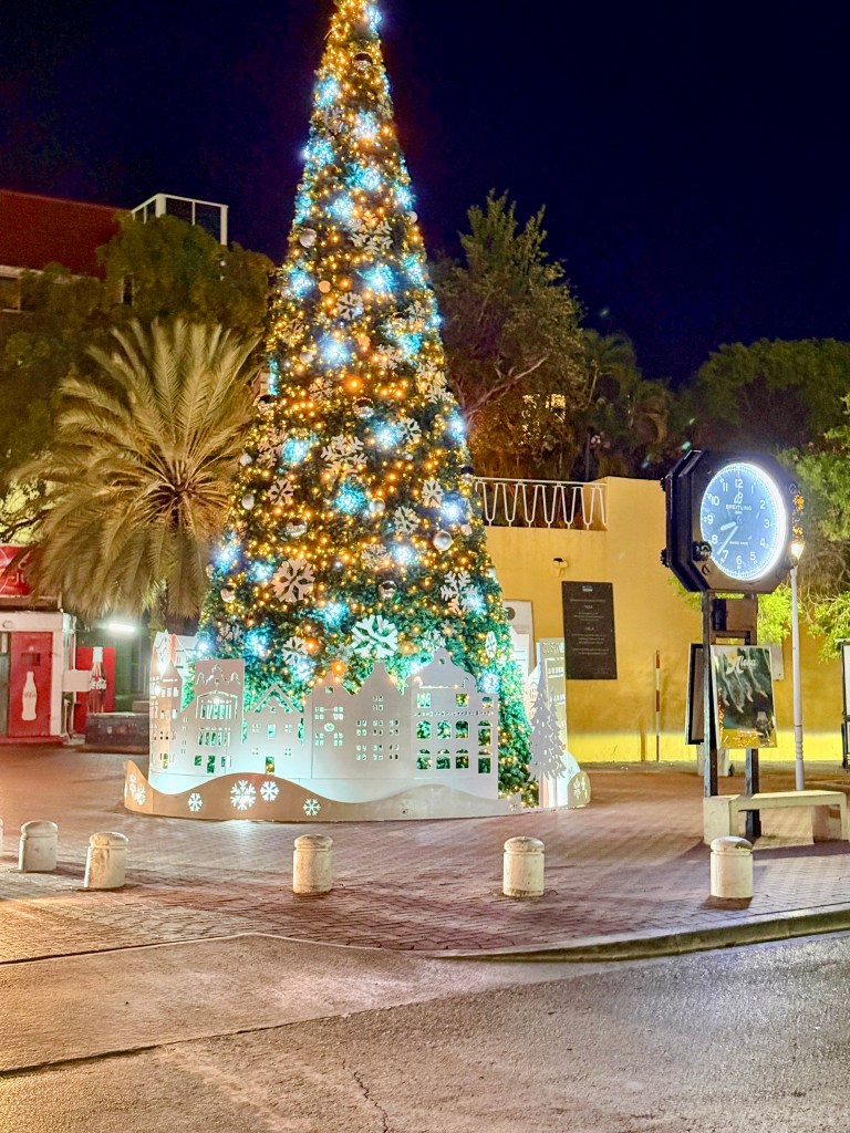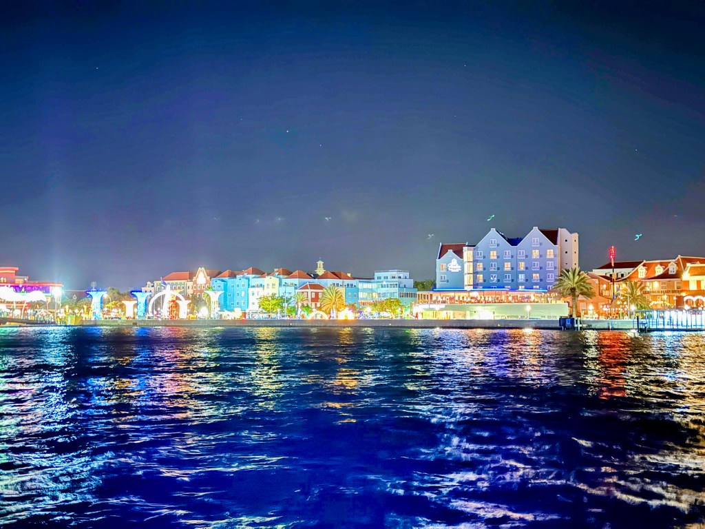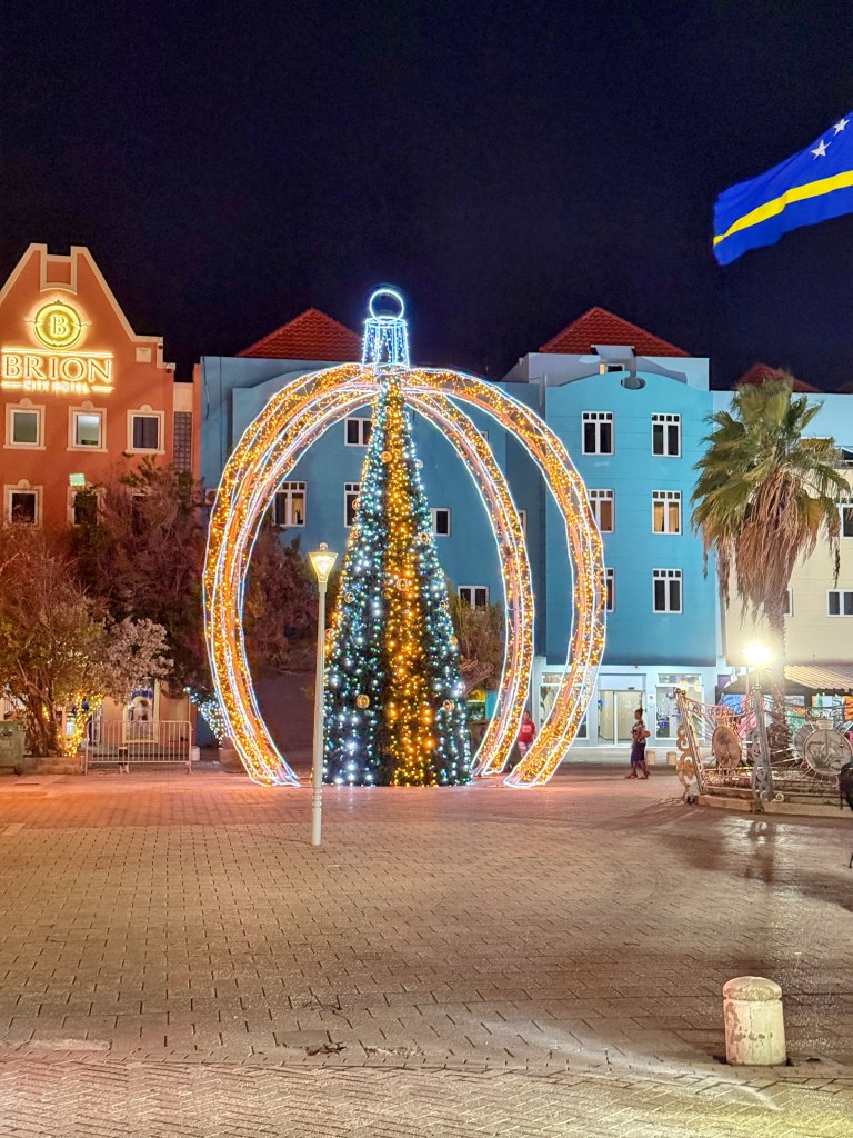 After dinner, we wandered along the waterfront admiring the Christmas decorations — Curaçao takes the holidays seriously, thanks to its Dutch roots. The city was glowing.