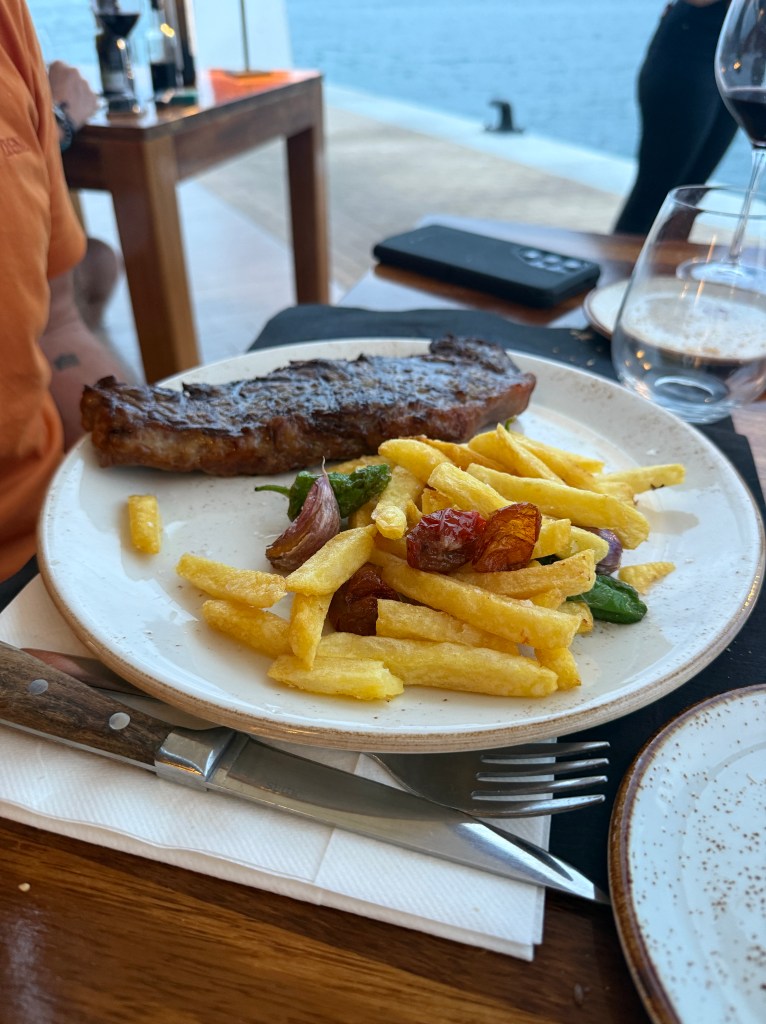 We had one DJ we wanted to see, but their set didn’t even begin until 3am. Just the idea of staying up that late, surrounded by sweaty, screaming, much-younger club kids gave me anxiety. No shade, just not my scene. Instead, we soaked in sunny beaches, did a bit of shopping, and discovered some incredible restaurants. One spot at the marina overlooked the old town—probably one of the best dining views of our trip, maybe our life.