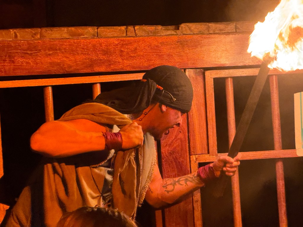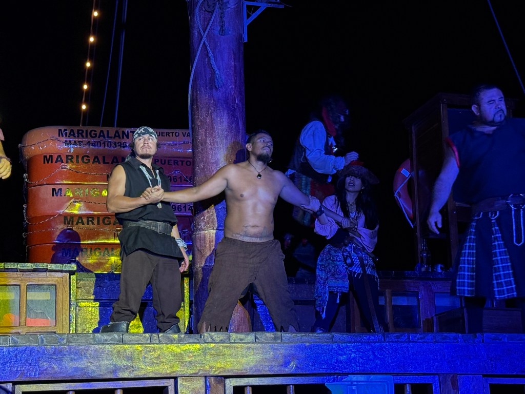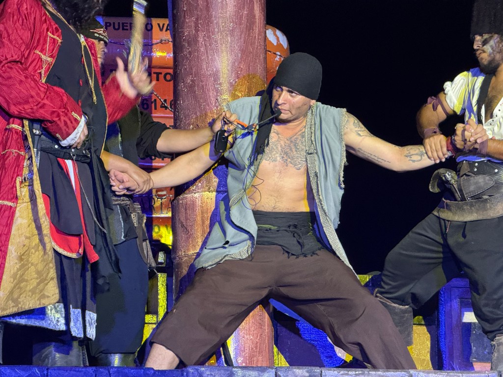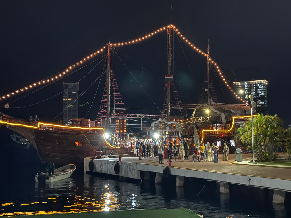 We’ve also managed to mix in a little adventure. One night, we booked the Marigalante Pirate Ship experience in Puerto Vallarta—and while it may sound kitschy, it was a surprisingly entertaining evening. The show was high-energy and filled with humor, acrobatics, sword fights, and dancing—definitely more geared toward adults than kids. Dinner was fine (nothing to write home about), but the fireworks over the bay were a highlight, and our host made the whole night even more enjoyable. If you’re in the area and looking for something fun and theatrical, it’s worth checking out.