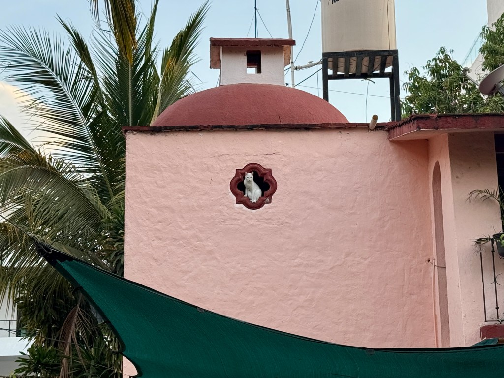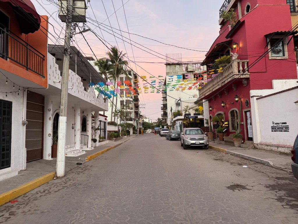 Aside from that chaotic moment, Bucerías has been a mixed but mostly beautiful experience. Admittedly, I wasn’t all that impressed on our first evening walk. We passed a few crumbling buildings, lots of trash, and got some distinct “developing country” vibes. But the next outing, we took a different route and stumbled upon charming cobblestone streets, vibrant homes, and colonial architecture that reminded me of St. Augustine. It’s clear the town is evolving—condos are going up everywhere—and it’ll be interesting to see what it becomes in the next few years.